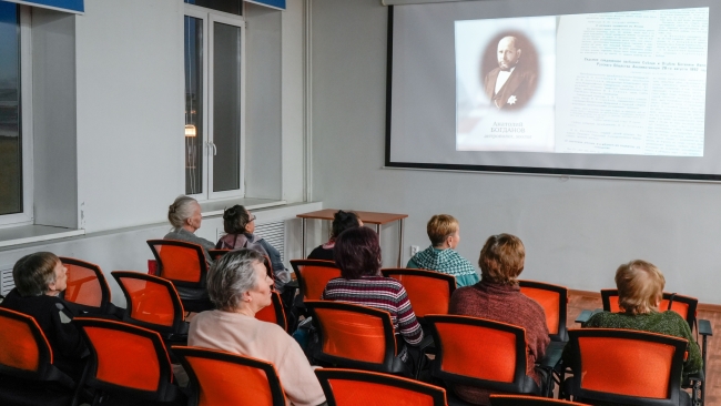 25 ноября 2025 года в Мурманской государственной областной универсальной научной библиотеке, на базе которой действует Региональный центр Президентской библиотеки, для участников клуба «Старшие» была проведена познавательная программа из цикла «Узнать новое, вспомнить забытое» о книгах и кинематографе.