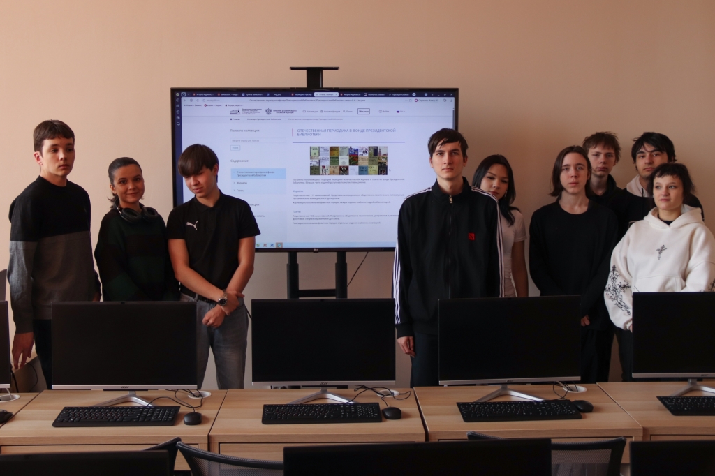 В рамках мероприятия был проведен обзор коллекции «Периодические издания» из фонда Президентской библиотеки, ребята познакомились с полными текстами журнала «Крокодил» за 20 годы XX века, узнали, как выглядел русский литературный и общественно-политический журнал «Современник», основанный поэтом Александром Пушкиным, издававшийся в Санкт-Петербурге в 1836—1866 годах.