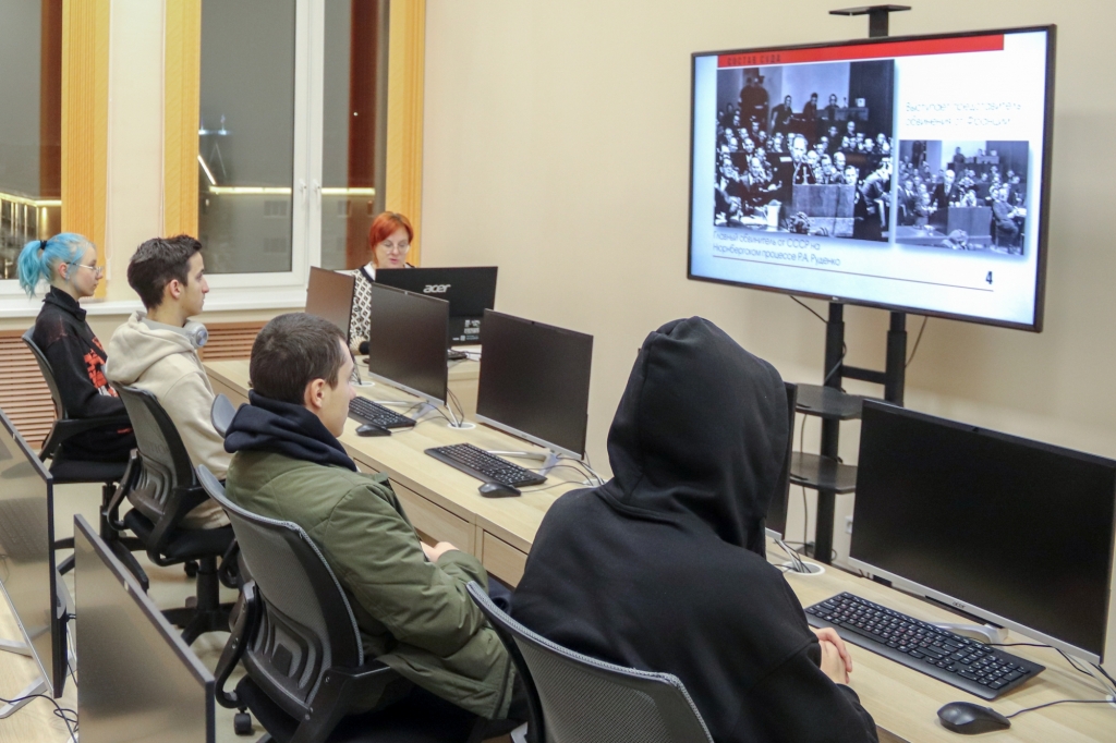 23 ноября в Мурманской государственной областной универсальной научной библиотеке, на базе которой действует Региональный центр Президентской библиотеки, прошла интерактивная беседа с элементами визуализации «Эпилог», посвященная 80-летию начала Нюрнбергского процесса. Гостями и активными участниками мероприятия стали студенты Мурманского индустриального колледжа. Беседа позволила участникам не только узнать об исторических фактах, но и активно участвовать в обсуждении, задавать вопросы и делиться своими размышлениями. Дискуссия затронула темы ответственности за преступления против человечности, борьбу с идеологиями ненависти и необходимость сохранения исторической памяти для предотвращения подобных трагедий в будущем.
