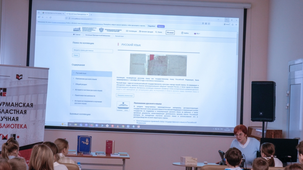 В рамках акции специалисты библиотеки подготовили обзор базовой коллекции «Русский язык» из фондов Президентской библиотеки, представив широкий спектр исторических документов, литературных произведений и лингвистических исследований. Учащиеся гимназии №10, школы №58 и Мурманского строительного колледжа узнали об исторических документах, литературных произведениях и лингвистических исследованиях по русскому языку в фондах Президентской библиотеки. Цель данного обзора – не только продемонстрировать разнообразие и богатство доступных материалов, но и показать, как эффективно их можно использовать в учебном процессе, повышая интерес к изучению русского языка на всех уровнях образования.