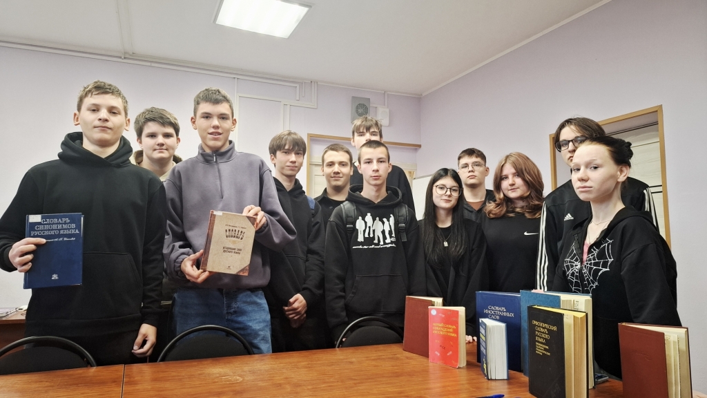 Студентам был представлен видеообзор, посвященный знаменитым словарям Даля и Ожегова, ставшими настоящим кладезем русского языка. Информация о некоторых словарях была взята из фондов Президентской библиотеки. Особый интерес вызвала книжная инсталляция, наглядно демонстрирующая разнообразие словарей и справочников, их структуру и назначение.