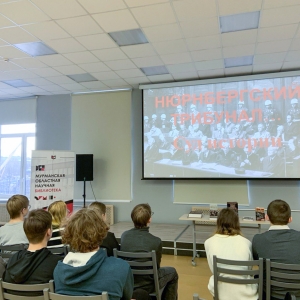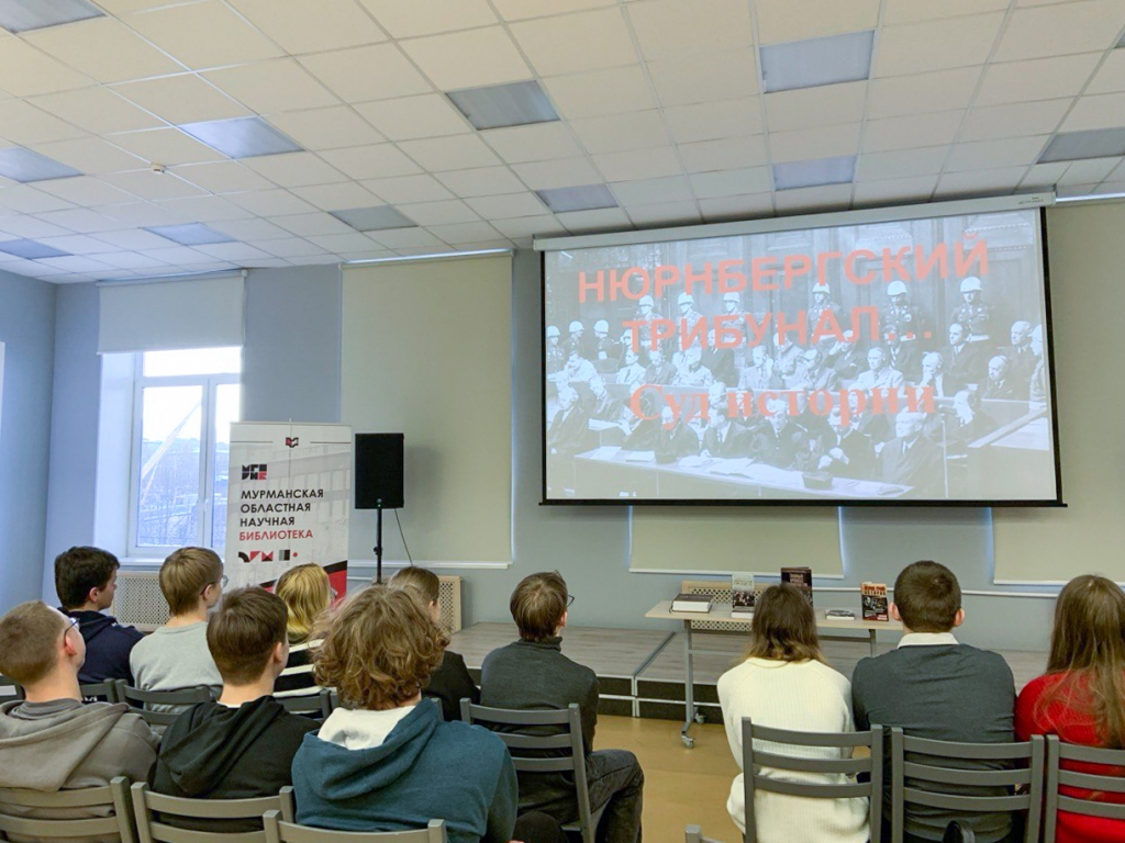 18 ноября 2025 года в Мурманской государственной областной универсальной научной библиотеке, на базе которой действует Региональный центр Президентской библиотеки в рамках историко-патриотического проекта «Моя страна – моя Россия» для студентов мурманских колледжей состоялся исторический экскурс «Эпилог: Нюрнбергский процесс». В рамках мероприятия прошел показ документального фильма «Антигитлеровская коалиция в годы Второй мировой войны» из фонда Президентской библиотеки им. Б. Н. Ельцина. В картине демонстрируются фрагменты выступления советского обвинителя Льва Николаевича Смирнова на судебном заседании в Нюрнберге и хроника преступлений фашистов. Студентам также рассказали об основных моментах и исторической значимости международного трибунала, представили литературу по теме. Викторина «Нюрнбергский трибунал: суд истории» позволила закрепить полученные знания.