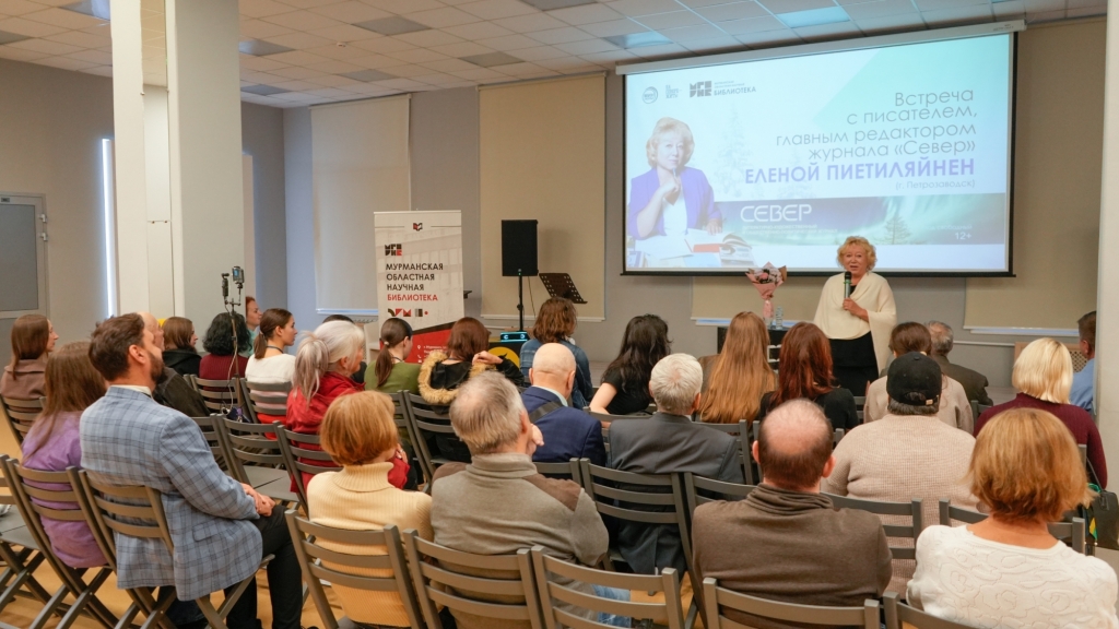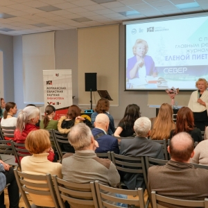 В библиотеке состоялась встреча с поэтом и писателем, главным редактором литературно-художественного и общественно-политического журнала «Север» Еленой Пиетиляйнен. Гости познакомились с ее творчеством, услышали в исполнении автора поэтические строки, посвященные Русскому Северу. На вечере прозвучали музыкальные произведения на стихи Елены Евгеньевны в исполнении Мирона Скрябина – артиста, заслуженного работника культуры Республики Карелия. Выставка изданий «Журнал «Север»: от истоков до современности» стала своеобразным путешествием по истории издания.