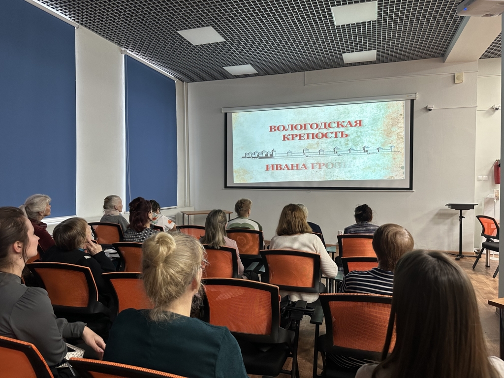 Также в рамках мероприятия по многочисленным пожеланиям участников клуба состоялся показ документального фильма «Вологодская крепость Ивана Грозного» из фонда Президентской библиотеки имени Б. Н. Ельцина. Картина позволила погрузиться в драматичную и многогранную историю одного из самых знаковых правителей России. Современные археологические, историко-библиографические и архивные исследования раскрывают тайны и загадки прошлого. Почему именно Вологду выбрал Грозный для своей резиденции? Было ли в планах у царя перенести столицу в наш город? Что произошло в 1571 году, когда Грозный прекращает строительство и покидает Вологду? Связан ли отъезд царя со знаменитым кирпичом, упавшим со свода Софийского собора? Отмечены ли сейчас границы старой крепости и почему разрушилось такое грандиозное сооружение? Все эти вопросы освещены в фильме об одном из величайших фортификационных сооружений эпохи Ивана Грозного – Вологодской крепости.