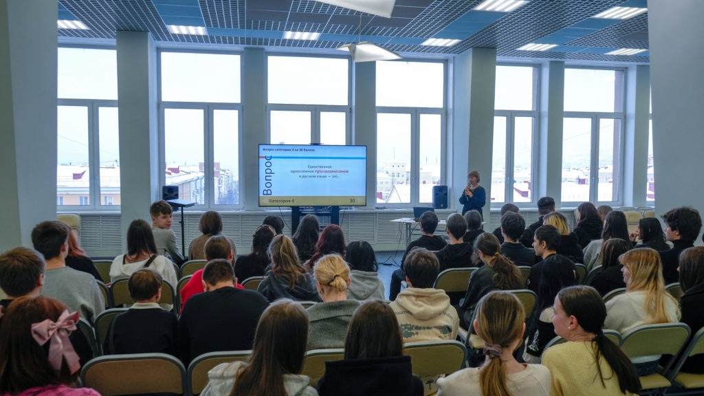 Команды студентов Мурманского морского рыбопромышленного колледжа, колледжа Мурманского арктического университета, Мурманского строительного колледжа сразились в квизе «Русский язык – не просто язык». Ведущим квиза стала Диляра Агапова, доцент, кандидат педагогических наук, преподаватель Мурманского арктического университета, лектор Российского общества «Знание» в Мурманской области. Команды с увлечением отвечали на интереснейшие вопросы и задания о значении и происхождении слов, о крылатых выражениях и цитатах великих русских писателей, об истории знаменитых словарей. Победителям были вручены подарки от Российского общества «Знание».