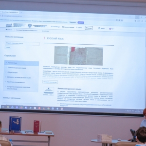 В рамках акции специалисты библиотеки подготовили обзор базовой коллекции «Русский язык» из фондов Президентской библиотеки, представив широкий спектр исторических документов, литературных произведений и лингвистических исследований. Учащиеся гимназии №10, школы №58 и Мурманского строительного колледжа узнали об исторических документах, литературных произведениях и лингвистических исследованиях по русскому языку в фондах Президентской библиотеки. Цель данного обзора – не только продемонстрировать разнообразие и богатство доступных материалов, но и показать, как эффективно их можно использовать в учебном процессе, повышая интерес к изучению русского языка на всех уровнях образования.