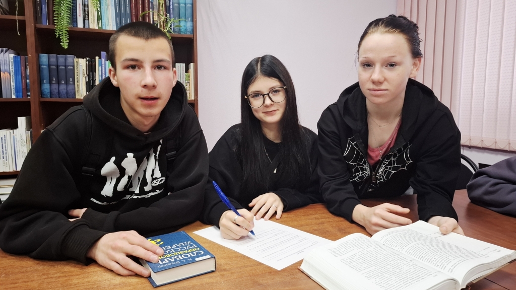 После теоретической части молодые люди выполнили задания с использованием различных словарей: орфоэпического, ударений, энциклопедического и этимологического, устаревших слов.