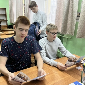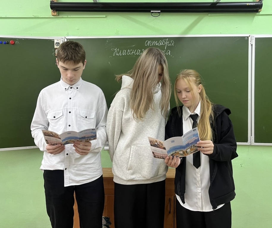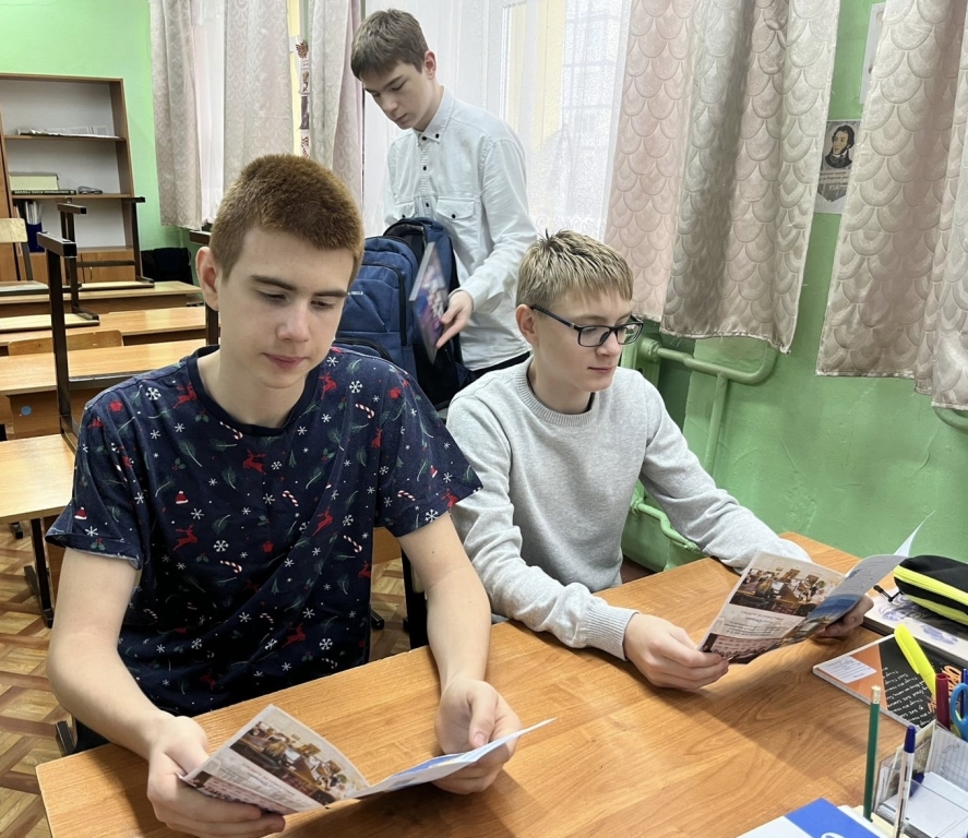 Учащимся школ раздавались буклеты, посвященные олимпиаде «Россия в электронном мире». Олимпиаду проводят Президентская библиотека и национальный исследовательский университет «Высшая школа экономики» по отдельным предметам – истории, обществознанию и русскому языку.